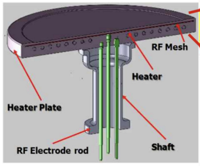 在使用等離子體增強化學氣相沉積(PECVD)設備制備薄膜時,成膜均勻性和膜厚的主要影響因素是等離子體特性和工藝溫度。首先,等離子體的密度和分布直接影響薄膜的均勻性和沉積速率。均勻分布的等離子體可以確保活性氣體在襯底表面充分反應,從而形成均勻的薄膜?。而等離子體能否均勻分布與嵌入加熱器中的射頻網(RF Mesh)密切相關。其次,特定的工藝溫度保證出色的熱均勻性。陶瓷加熱器確保晶圓表面溫度在±1.0% 以內波動。比如日本礙子(NGK insulator) 生產的加熱器溫度波動小于 0.1%,屬于優異指標。
